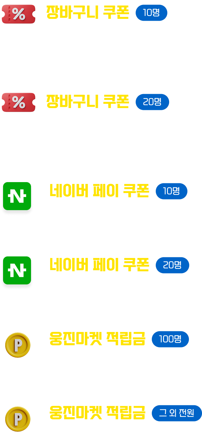 당첨 적립금/장바구니 쿠폰은 웅진마켓 마이페이지에서 확인 가능합니다.
