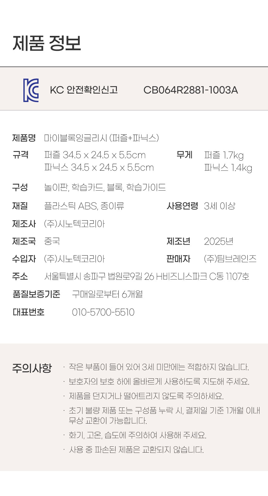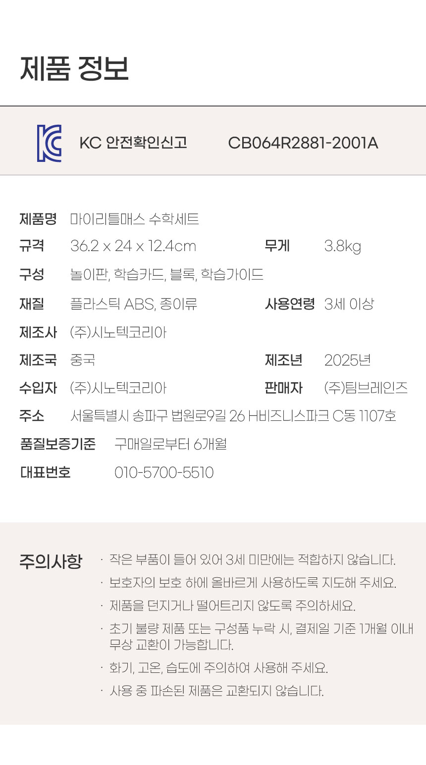 5) 웅진마켓에 등록된 판매자 상품의 내용은 판매자가 등록한 것으로 ㈜웅진씽크빅은 등록된 내용에 대하여 일체의 책임을 지지 않습니다.