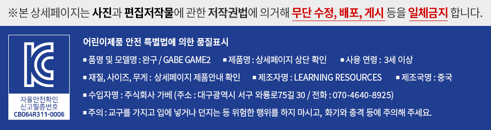 3) 전기용품 및 생활용품 안전관리법 및 어린이제품 안전 특별법 규정에 의한 안전관리대상 품목인 전기용품, 생활용품, 어린이제품을 판매 또는 구매하실 경우에는 해당 제품이 안전인증, 안전확인, 공급자적합성확인, 안전기준준수 적용 제품인지 확인하시기 바랍니다.