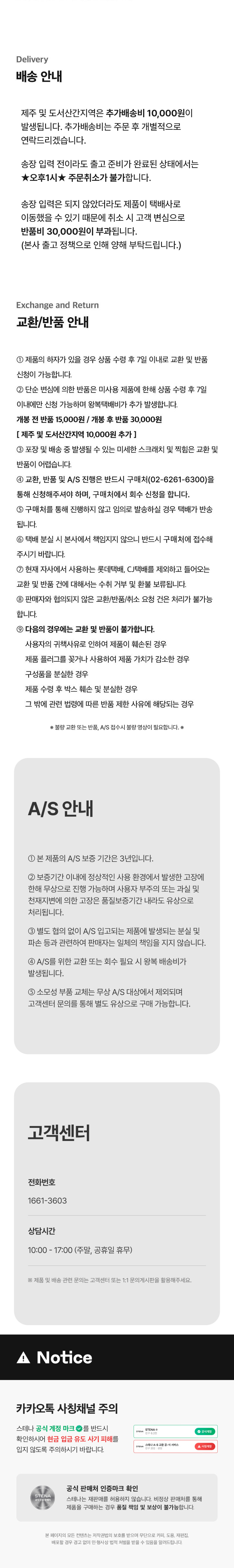 A/S 전화번호 스테나 고객센터 : 1661-3603