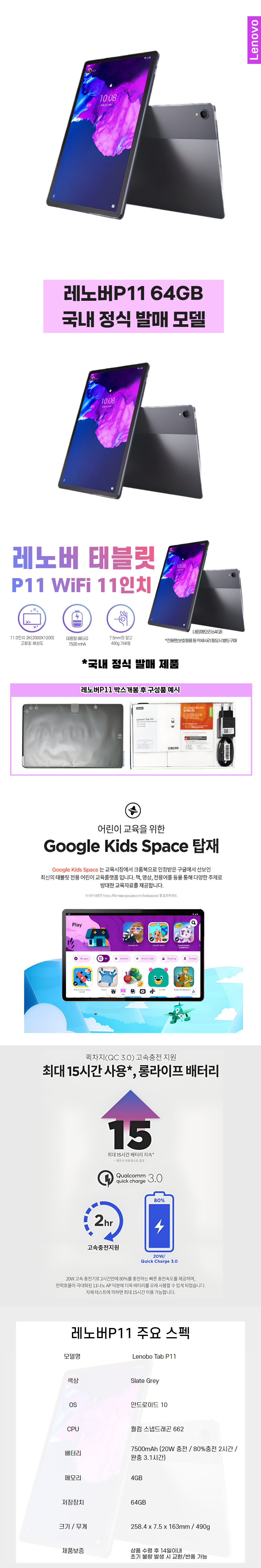 [레노버] 태블릿 P11*LENOBO TAB P11 (64GB)